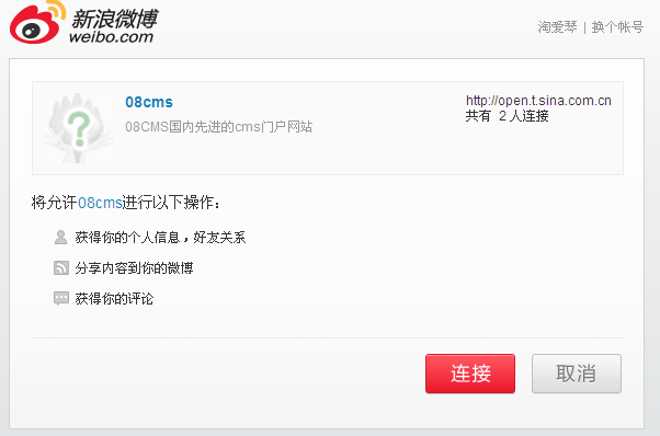 OK.新浪微薄帐号绑定设制完毕。