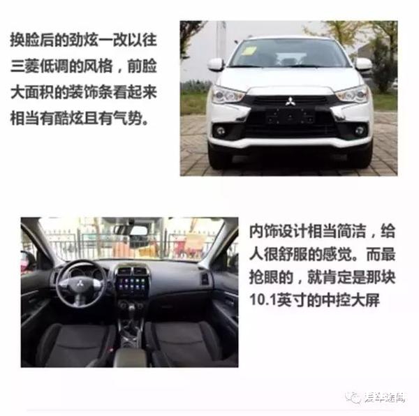 劲炫ASX换脸之后,有种狂野的感觉,有别于同级别的对手。但CVT变速箱与偏向舒适的底盘调校却展现了它温柔的一面。而三菱的四驱系统一向都是值得信赖,这台新劲炫ASX的四驱系统与老款相同,中央差速机构采用电控多片离合式差速锁,四轮带有独立电子刹车辅助系统的配合,城市SUV中算是比较强悍。而据悉,劲炫ASX在北京某4S店已经有1万多的优惠。