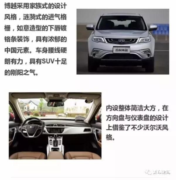 吉利在近几年的进步是大家有目共睹的,而这款博越作为吉利SUV的当家花旦,已经具备冲击合资品牌水平的实力。虽然车身尺寸并没有一贯自主车企的“豪气”,但是在主动刹车、自适应巡航、自适应远近光灯等等的这些高端又实用的配置,在同级别中并不常见,性价比还是比较高的。