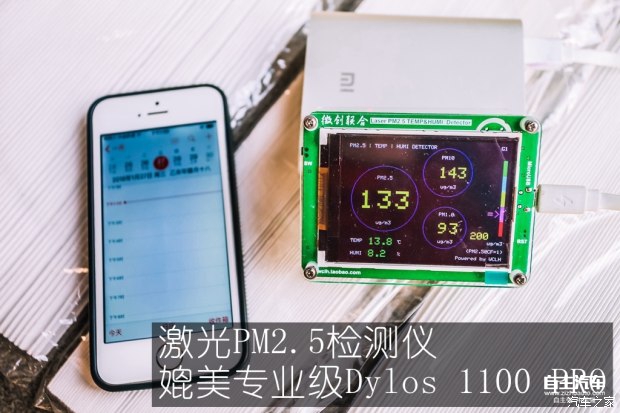 首先,我们将车放在车间室内,室内因为短期开关门,PM数值已经达到133,这个环境相当于各种地下车库了。