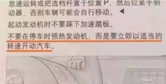 《上海大众汽车全新途观维护使用说明书》里面专门有这样一句话:发动机启动之后,切勿原地停留预热,而是应该立即起步行驶。