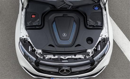 外观方面,新车沿用了Generation EQ概念车的设计语言,贯穿前脸的日间行车灯不仅具有非常高的辨识度,还给新车进一步增添了未来感。前格栅采用了封闭式设计,格栅下方配有U型黑色饰板,两侧与前大灯组相连接,边缘被粗壮的镀铬饰条勾勒,内部有镀铬条幅填充,维持了奔驰应有的质感。