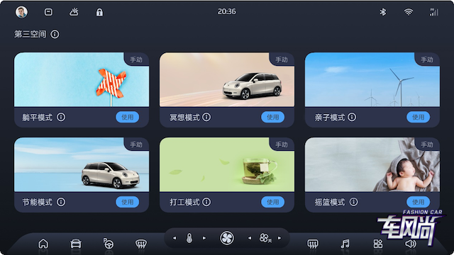 钇为3冠军版的中控台上搭载的12.8英寸中控大屏,内置高通骁龙高性能芯片,打破传统卡顿、功能少的智能体验,让操作更顺滑;与科大讯飞、华为联合定制了钇为OS,操作丝滑易用,像一键场景模式,不仅拥有躺平模式、摇篮模式、冥想模式等多个实用场景,还可根据自身习惯DIY自定义,真正做到按需用。不足10万的价格,带来30万级的智能座舱享受,这就是钇为3的冠军级体验。