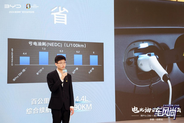 随后,比亚迪的产品经理为现场嘉宾详细介绍了宋Pro DM-i荣耀版的各项优势。他提到,新车采用了比亚迪最新的DM-i超级混动技术,结合了高效能与低油耗的特点,为用户提供了更加经济、环保的出行选择。同时,新车在设计、配置以及安全性能等方面也进行了全面升级,为用户带来了更加智能、便捷的驾驶体验。
